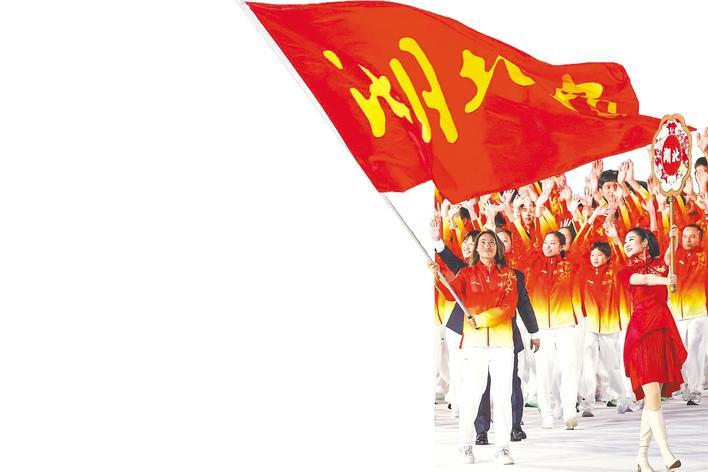 湖北省体育代表团进区。 。 “我了解湖北,这里有美丽的山河。荆楚运动员在祖国心目中,继承了1984年以来每届奥运会夺得金牌的荣耀,以感恩、不忘初心、勇攀高峰的建设精神,奋力谱写体育强省新篇章。广东奥体中心,按照中央电视台解说员的介绍,湖北网球名将、巴黎奥运会冠军郑钦文走在湖北体育代表团的前面。在他身后,51名湖北运动员向观众挥手致意。本次全运会,湖北体育代表团共有604名竞技运动员参加,在开幕式前举行的多个竞技项目的决赛中,湖北体育代表团获得了3金3银2铜,其中陈伯良获得了个人项目的金牌。现代五项(老五项)锦标赛,为湖北军夺得首枚金牌,取得全运会该项赛事的历史性胜利;王宗源以高质量、稳定表现夺得跳水项目男子1米跳板金牌;张子阳在10公里马拉松游泳项目中卫冕。在群众体育比赛中,湖北军团获得9金6银8铜。省体育局局长水兵告诉湖北日报记者,第十五届全运会恰逢我省学习贯彻党的二十届四中全会精神、加快打造支点的关键时刻。湖北运动员牢记嘱托,不辱使命。财富,精心拼搏,力争第一,努力弘扬中国体育精神,讲好湖北体育故事,彰显湖北美好形象一、努力实现体育成绩与精神文明并举,努力为体育加快支点建设贡献更多力量。 (湖北日报全媒体记者 马明宇)