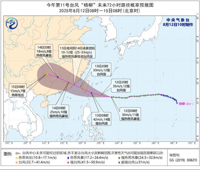 大风预测:从8月12日至8月13日的14:00,将有6至8级的风,台湾东部的阵风9至10级,巴希海峡,台湾海峡,东部中国台湾海峡,台湾大多数,台湾岛和富士岛的大多数。台湾东部的海洋和台湾的一些海可以达到9,直到10到10,阵风11至12级,附近的水和经过风暴中间的地区的风将为11至14,而15至16级的阵风。