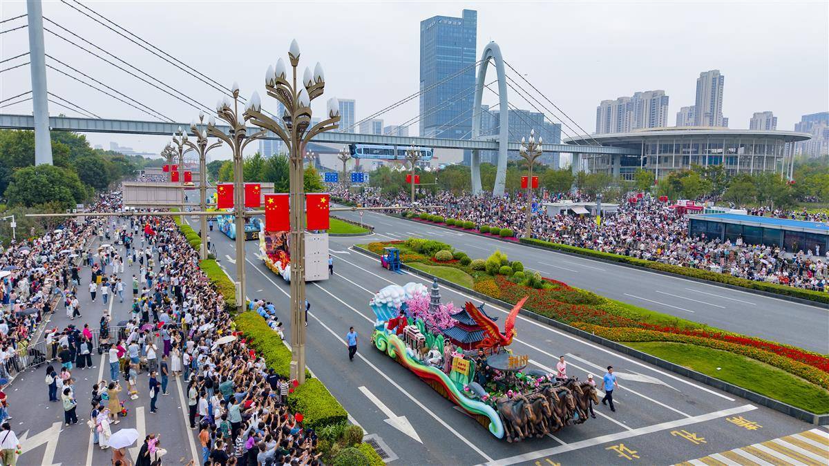 10月1日,在Wuhan Optics Valley High-Tech Avenue上,“河流和山脉为IP City City Parade增添了亮度”,与科幻小说《光学谷》相同的地块。 23主题浮标,包括“明亮的河流和山脉”,“原始志向”,“摇滚风格和汉族韵”,“无形的文化遗产国家趋势”,“动漫可爱的宠物”和“全球狂欢节”。公民和游客是节日。 38个特殊的文化和旅游表演团队,包括广东杨舞,西藏香南藏族歌剧,福吉安·昆都“花发夹”和四川面部的变化转变为表演和与观众社交。 (韦伊·卢(Wei Lu)的照片,Hubei Daily All Media Reporter)